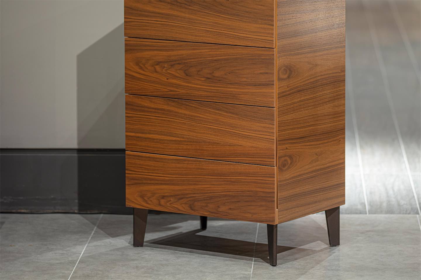 Den höga profilen ger byrån en elegant och distinkt siluett, perfekt för dig som vill maximera förvaringen utan att ta upp mycket golvyta. Lådans symmetri och de subtila linjerna skapar en harmonisk balans mellan funktion och form. Den naturliga stentoppen adderar ett exklusivt inslag som förhöjer rummets karaktär.