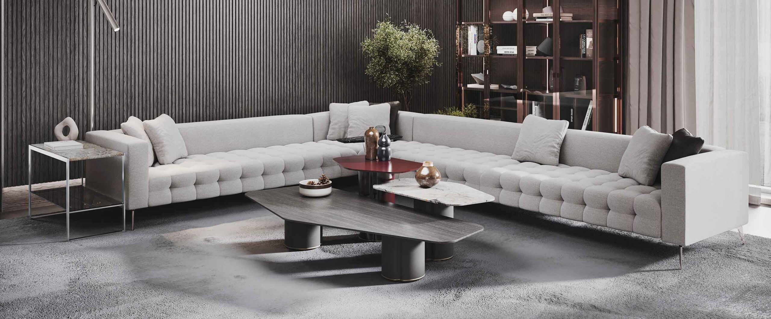 MEST hörnsoffa kombinerar komfort och modern elegans med sin modulära design och uttrycksfulla estetik. Den skapar ett flexibelt, varmt och inbjudande uttryck i vardagsrummet för både dig och dina gäster.