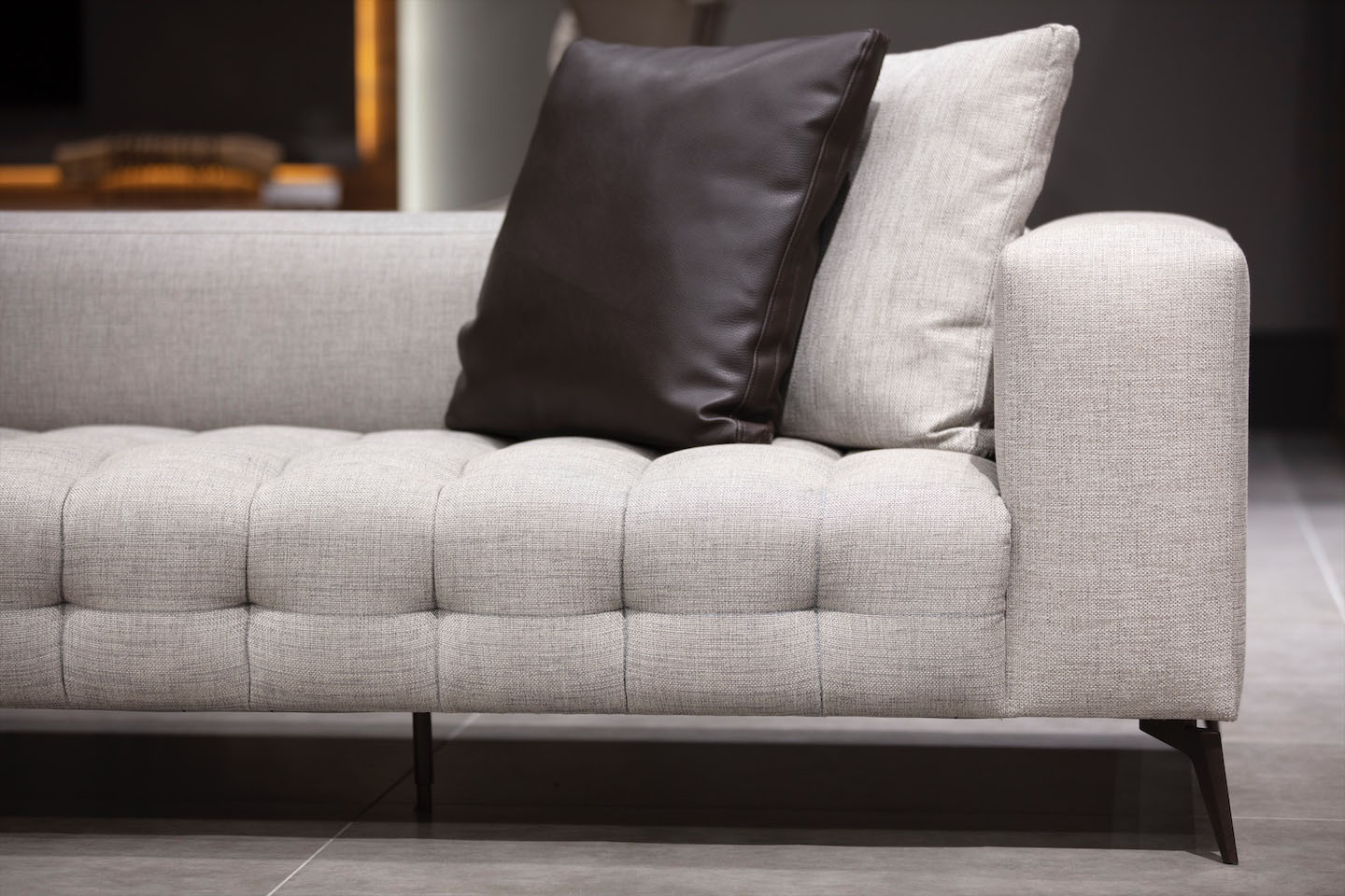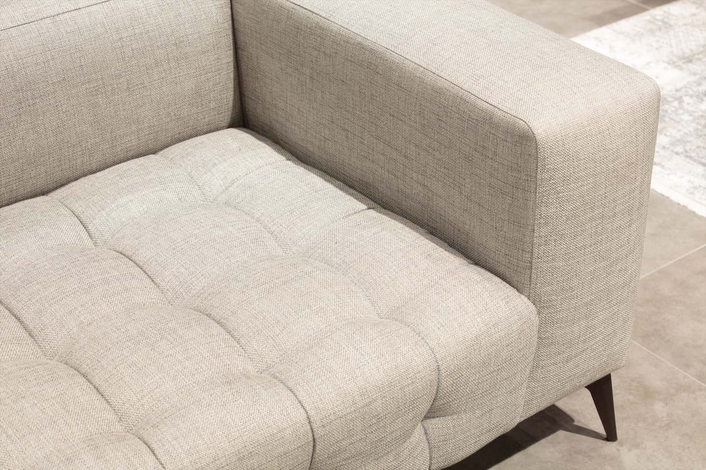 Soffan präglas av geometriska linjer, snygga stygn i sittkudden och sömlös övergång mellan armstöd och rygg. Metallbenen tillför en visuell kontrast samtidigt som helheten känns balanserad och harmonisk. MEST kan anpassas i olika moduler för att passa olika rumslayouter.
