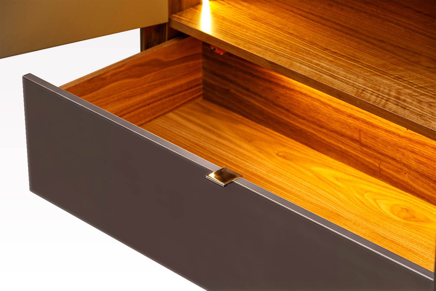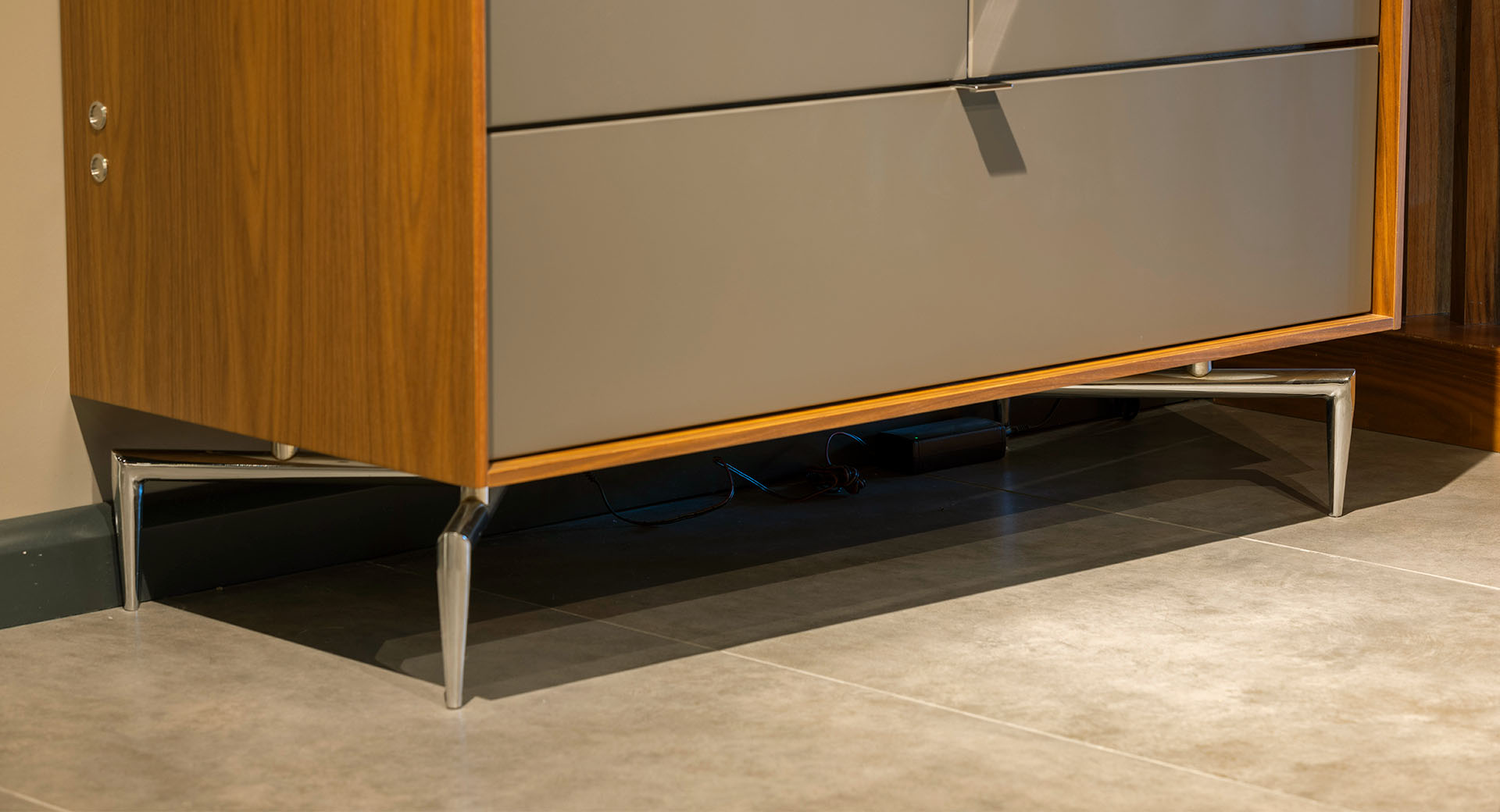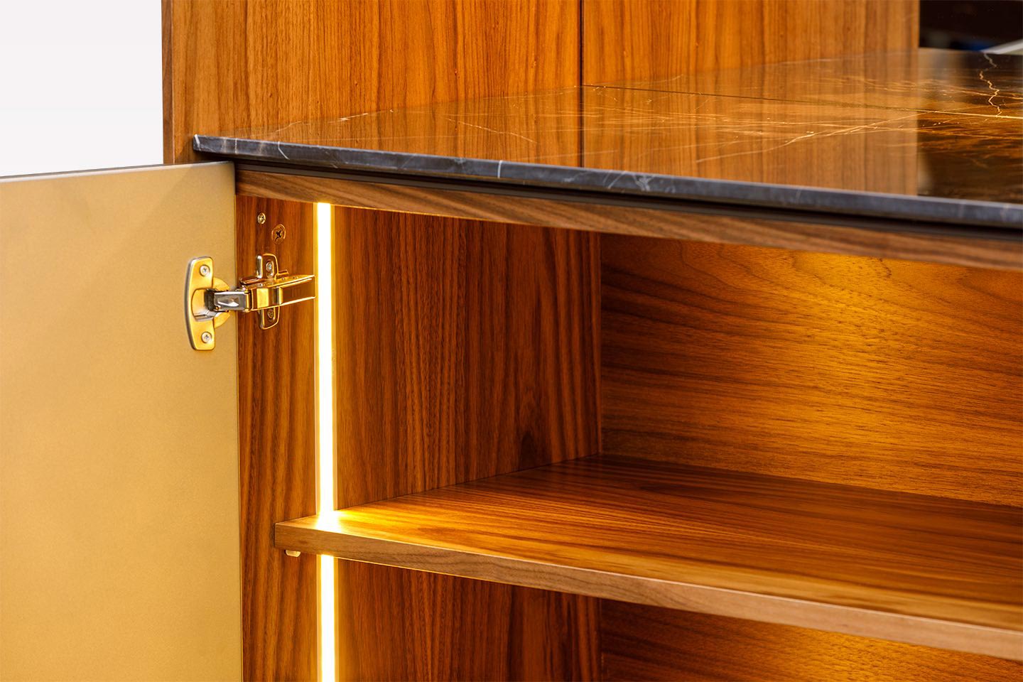 Den höga profilen hos MEST ger en skulptural närvaro utan att ta upp för mycket golvyta. Dörrarna och luckorna är placerade för att skapa harmoni i uttrycket, medan den inre inredningen möjliggör flexibel lagring för tallrikar, glas, böcker eller dekorativa föremål.