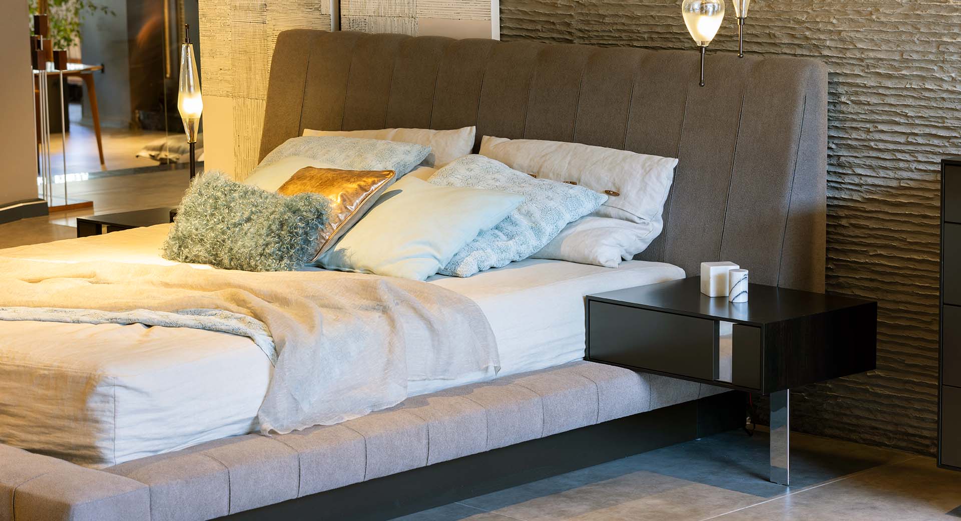 Med sin balanserade form och stilrena siluett smälter REBEL nattduksbord in i moderna sovrum utan att övermanna dem. Den eller de lådorna erbjuder smart förvaring för dina nattliga behov – allt från böcker och mobiltelefoner till mindre ägodelar. Det grafiska uttrycket ger en distinkt karaktär samtidigt som möbeln upprätthåller en visuellt lätt känsla.