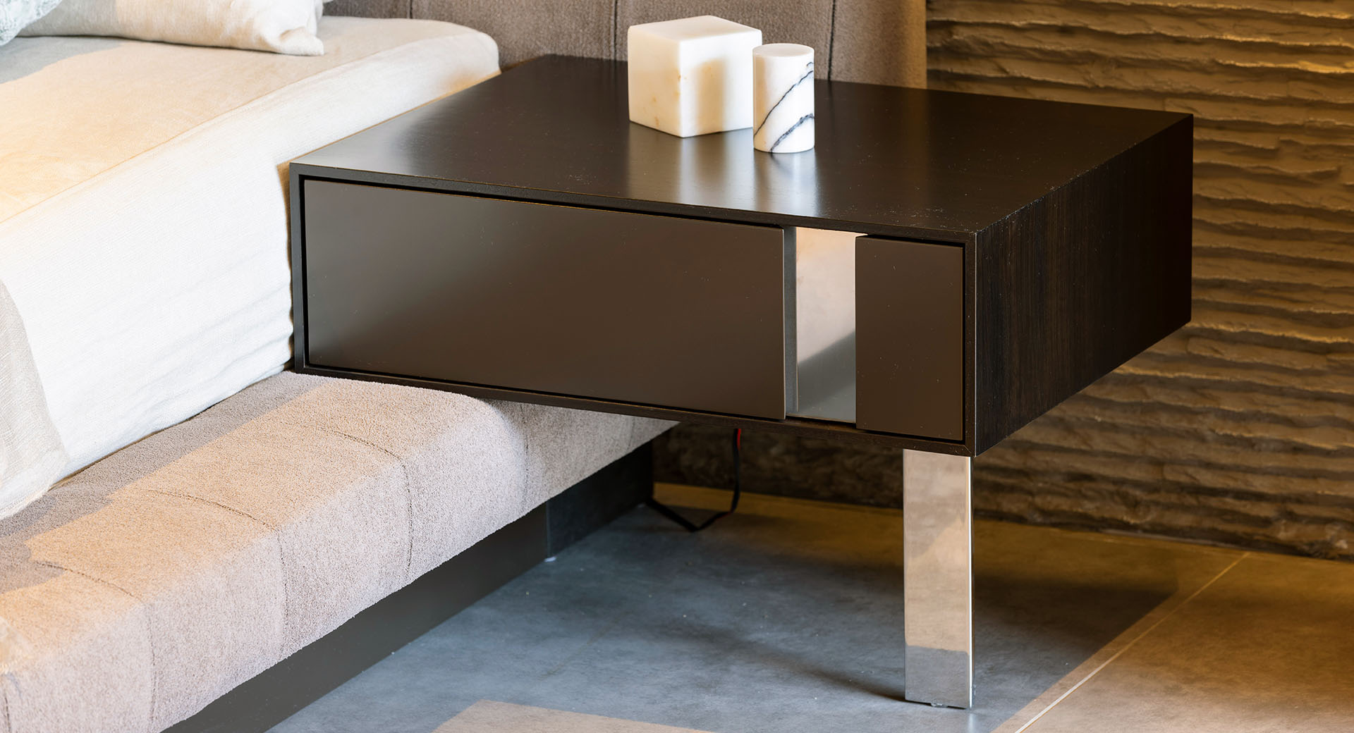 REBEL nattduksbord förkroppsligar en dynamisk och modern estetik i ditt sovrum. Kombinationen av rena linjer, materialbalans och funktionella detaljer gör den till ett attraktivt och praktiskt tillskott.