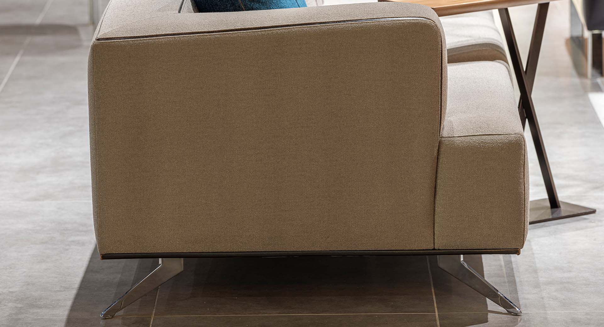 Konstruktionen är robust och stomme, stoppning och klädsel är noggrant valda för hållbarhet, komfort och estetisk karaktär. Sömmar, kantdetaljer och benfinish är utförda med precision – ett bevis på Fugas fokus på högklassigt hantverk.